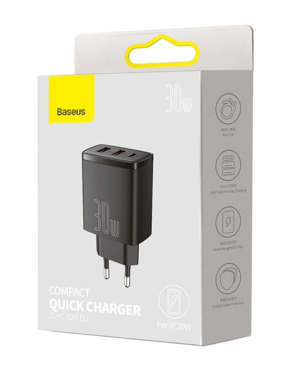 Сетевое зарядное устройство Baseus Compact Quick Charger 2U+C 30W EU (CCXJ-E01) black
