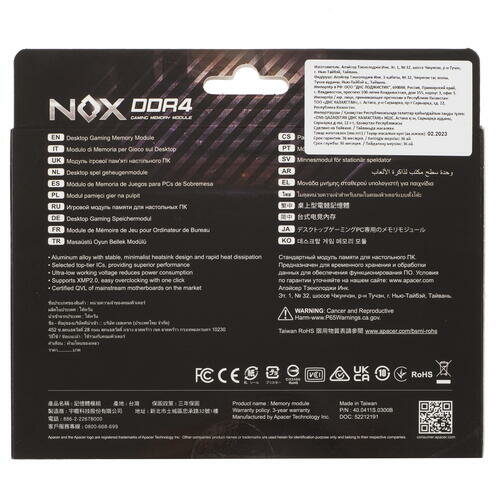 Купить Модуль памяти 16GB Apacer NOX Series AH4U16G36C25YMBAA-1, DDR4, DIMM, PC4-28800, 3600MHz, CL18