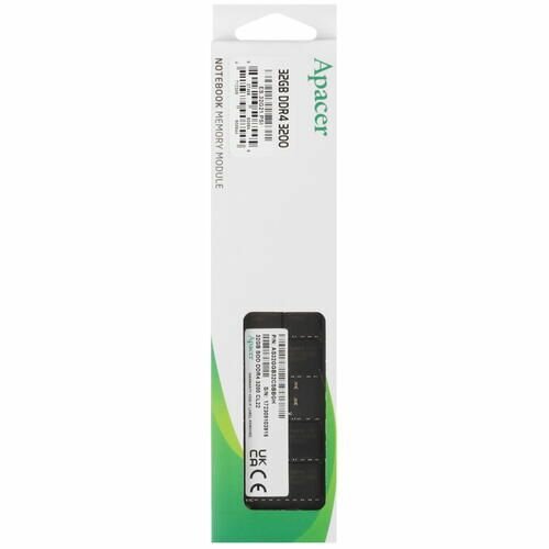 Память Apacer DDR4 32GB 3200MHz SO-DIMM (PC4-25600) CL22 1.2V (Retail) 2048*8 3 years (AS32GGB32CSBBGH/ES.32G21.PSI)