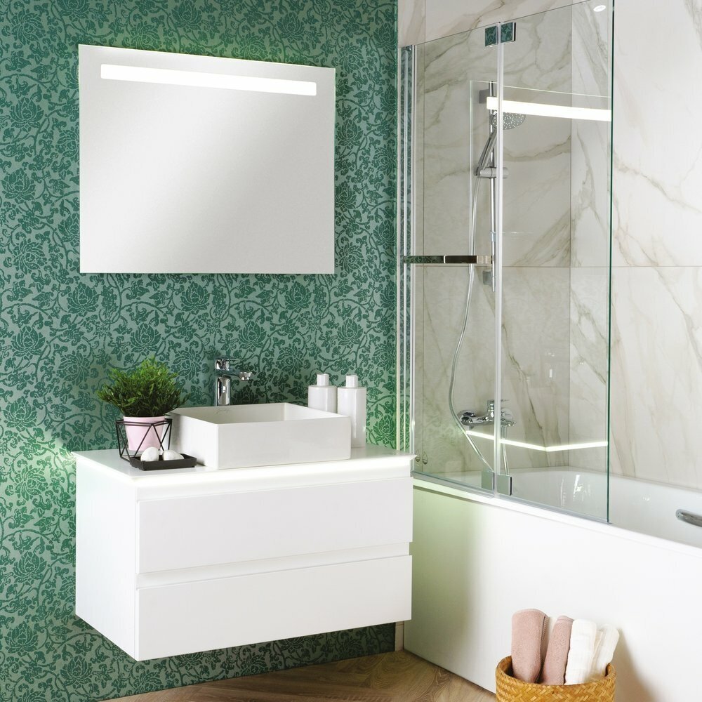 Тумба для раковины Jacob Delafon Madeleine 80 см EB2083-J5 со столешницей, с подсветкой, белый глянец