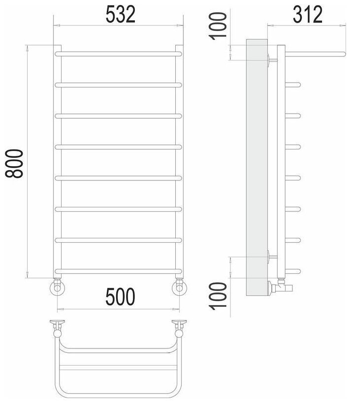 Полотенцесушитель водяной TERMINUS Полка П8 500х800 без американок в комплекте