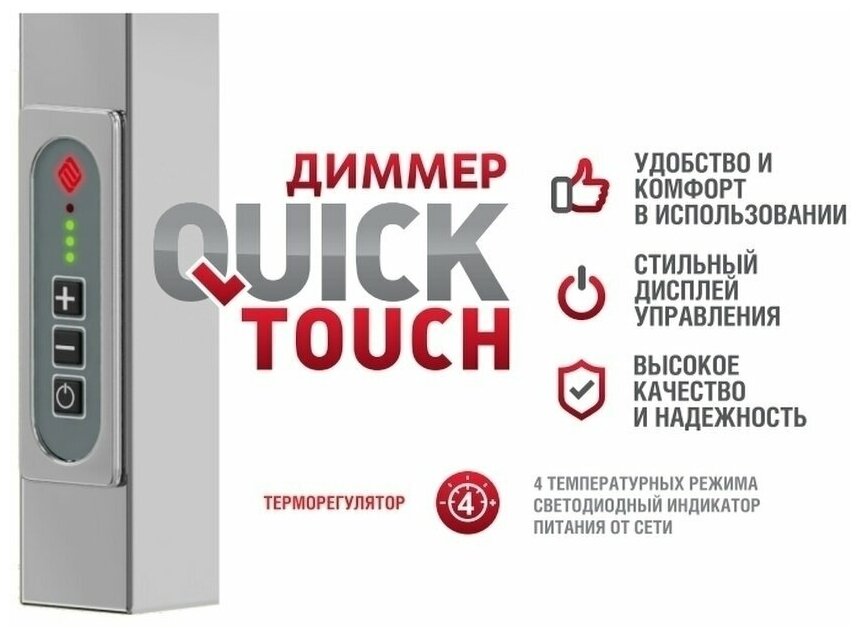 Полотенцесушитель электрический белый TERMINUS (Терминус) Сицилия П6 КС 450х600 мм, диммер 5-ого поколения Quick Touch, гарантия 2 года/ Электрический полотенцесушитель с терморегулятором