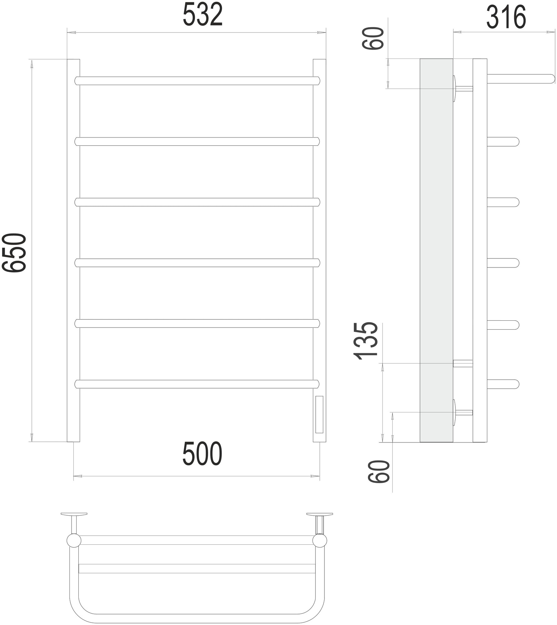 Полка П6 500х650 Электро (quick touch) Полотенцесушитель TERMINUS (терминус)