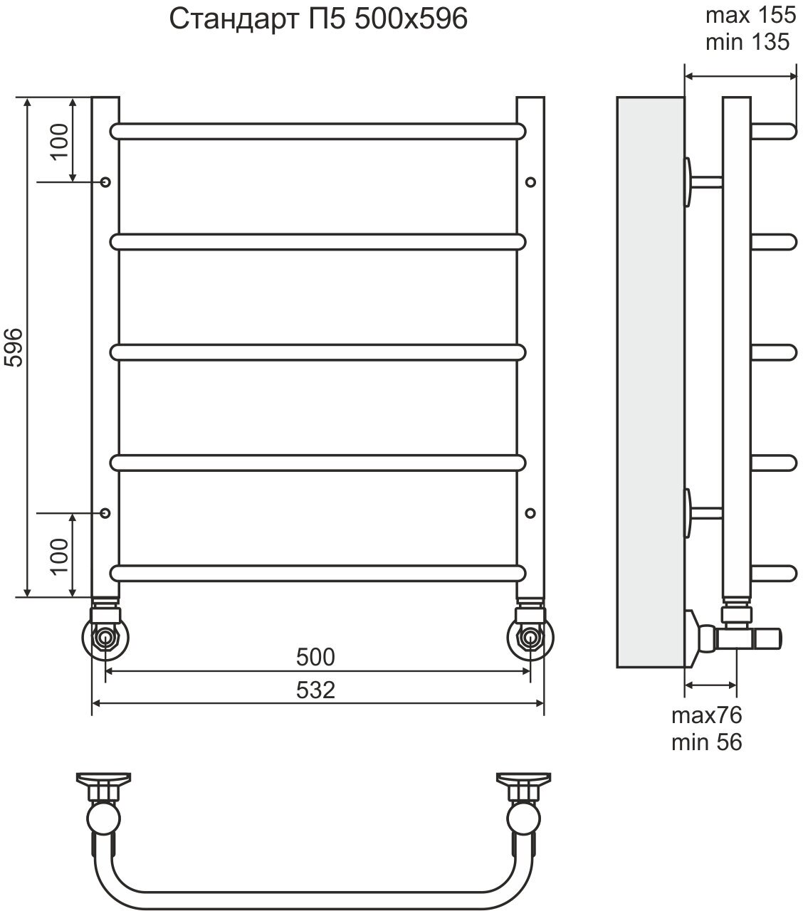 Полотенцесушитель "Стандарт" 32/20П5 500*596 (500*630) 4670030725295