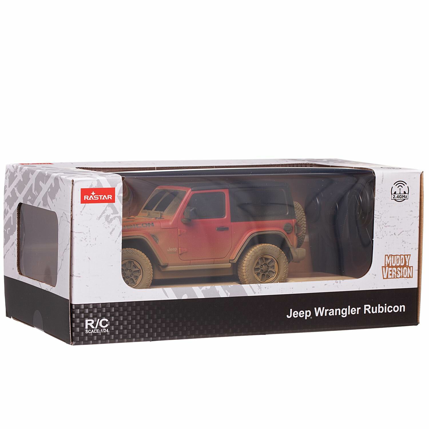 Машина р/у 1:24 JEEP Wrangler Rubicon-Muddu version, красный. Модель с эффектом загрязнения. Rastar 79500-4