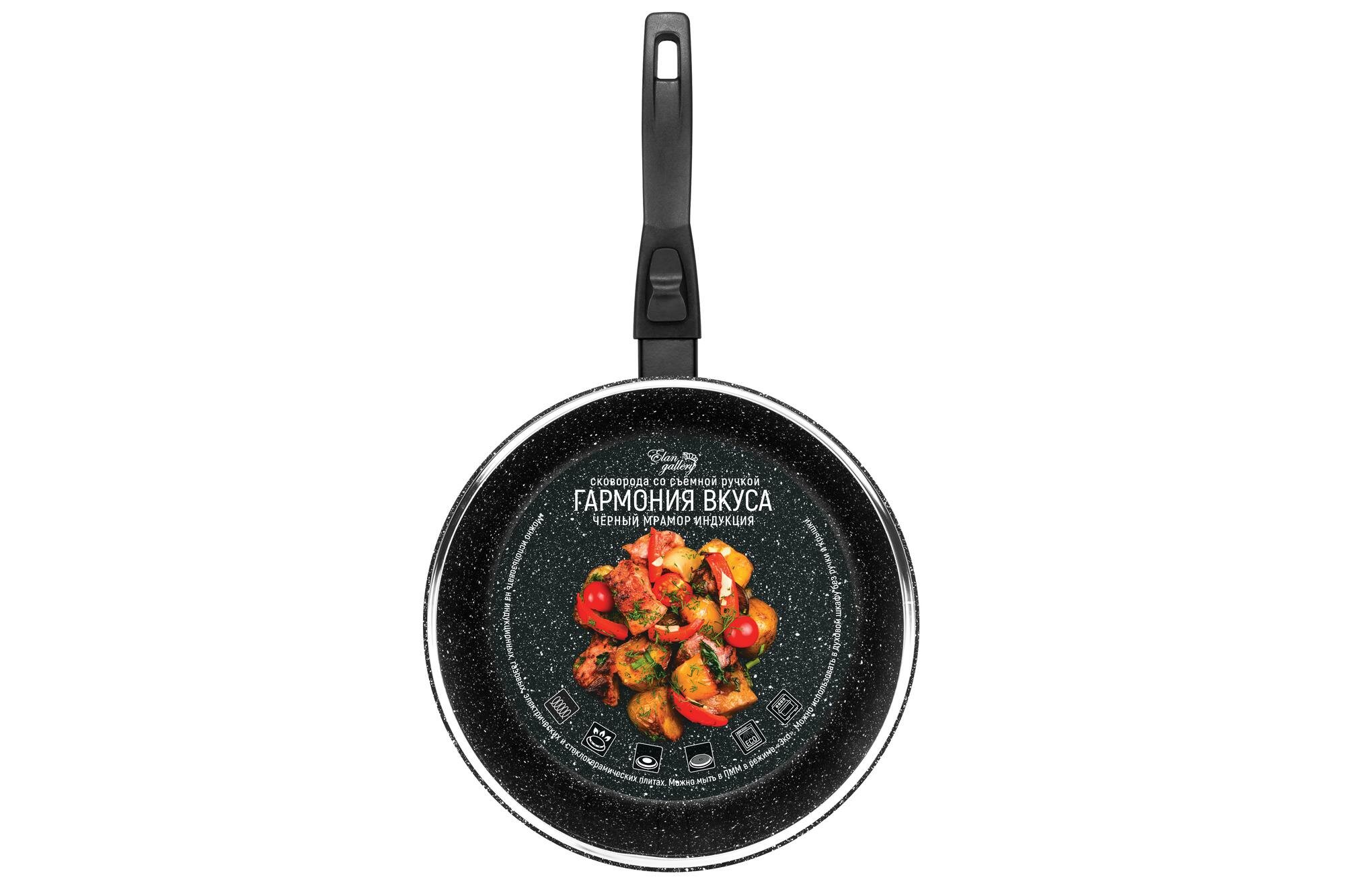 Купить Сковорода глубокая 26 см Elan Gallery гармония вкуса Черный мрамор индукция, с крышкой D26, со съёмной ручкой