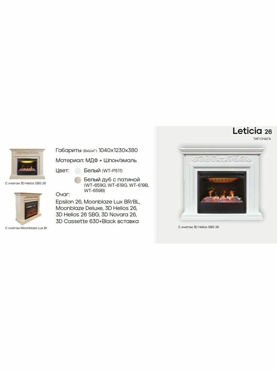 Электрокамин RealFlame Leticia 26 WT-619G с очагом Moonblaze Lux Brass интересное: