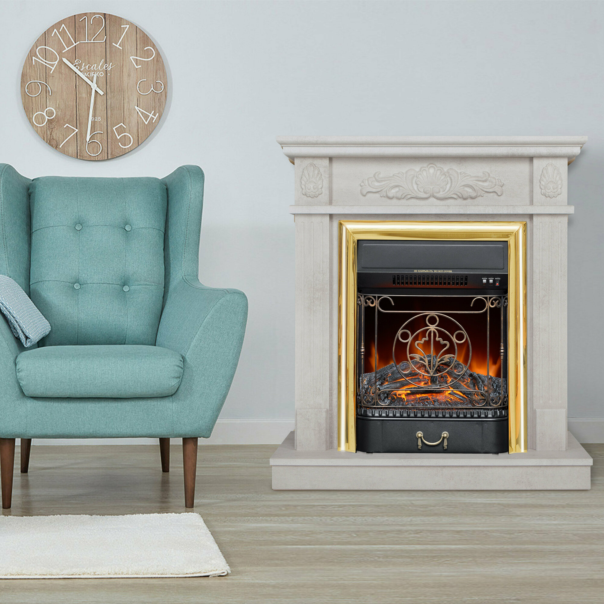 | Дополнительная информация | Материал портала: МДФ Цвет: белый камень Тип: пристенный Стиль: классика Вид транспортировки: разобранный Страна производства: Россия Функции очага: Мощность обогрева: до 1,5 кВт Регулировка мощности обогрева Защита от перегрева Звук потрескивания дров Лампы накаливания |