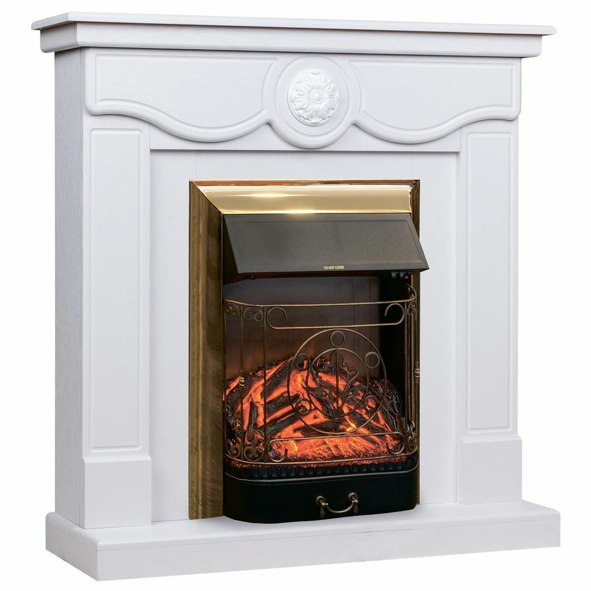 Электрокамин RealFlame Aurora WT с очагом Majestic Lux Brass, Белый