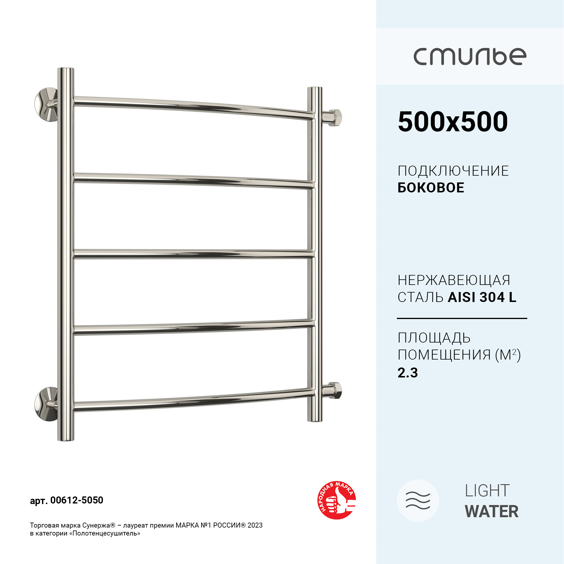 Полотенцесушитель водяной стилье "Версия-Б2" 500х500 (5) Г 18