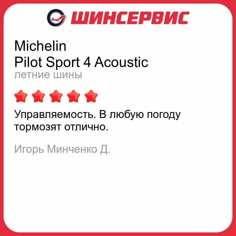| Отзыв: | Катал ПС 2, ПС 3 и вот теперь ПС 4)) Начиная с ПС 3 Мишлен вывел их в класс пониже, зато в дождь стало лучше. |