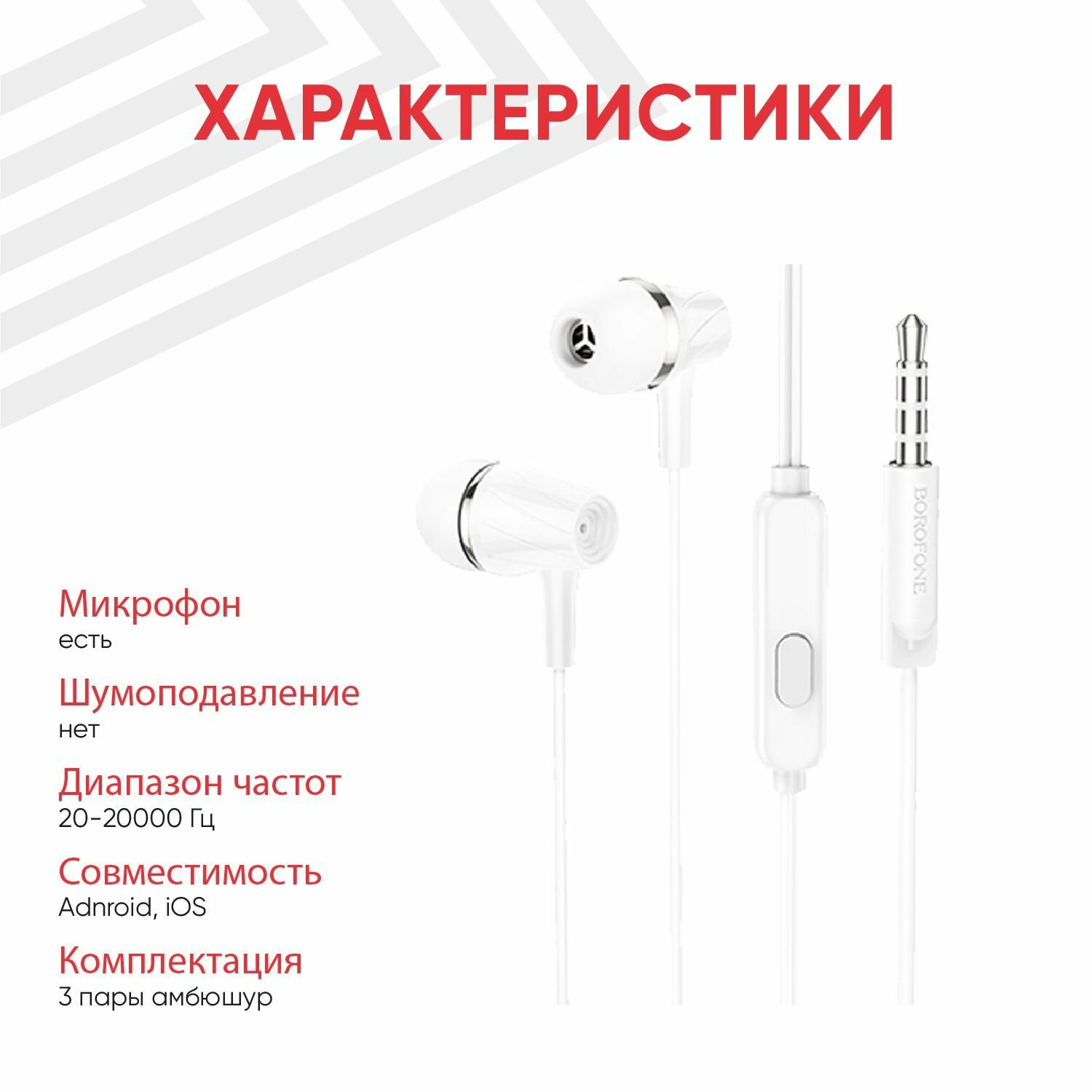 Наушники с микрофоном Borofone BM69, белая интересное: