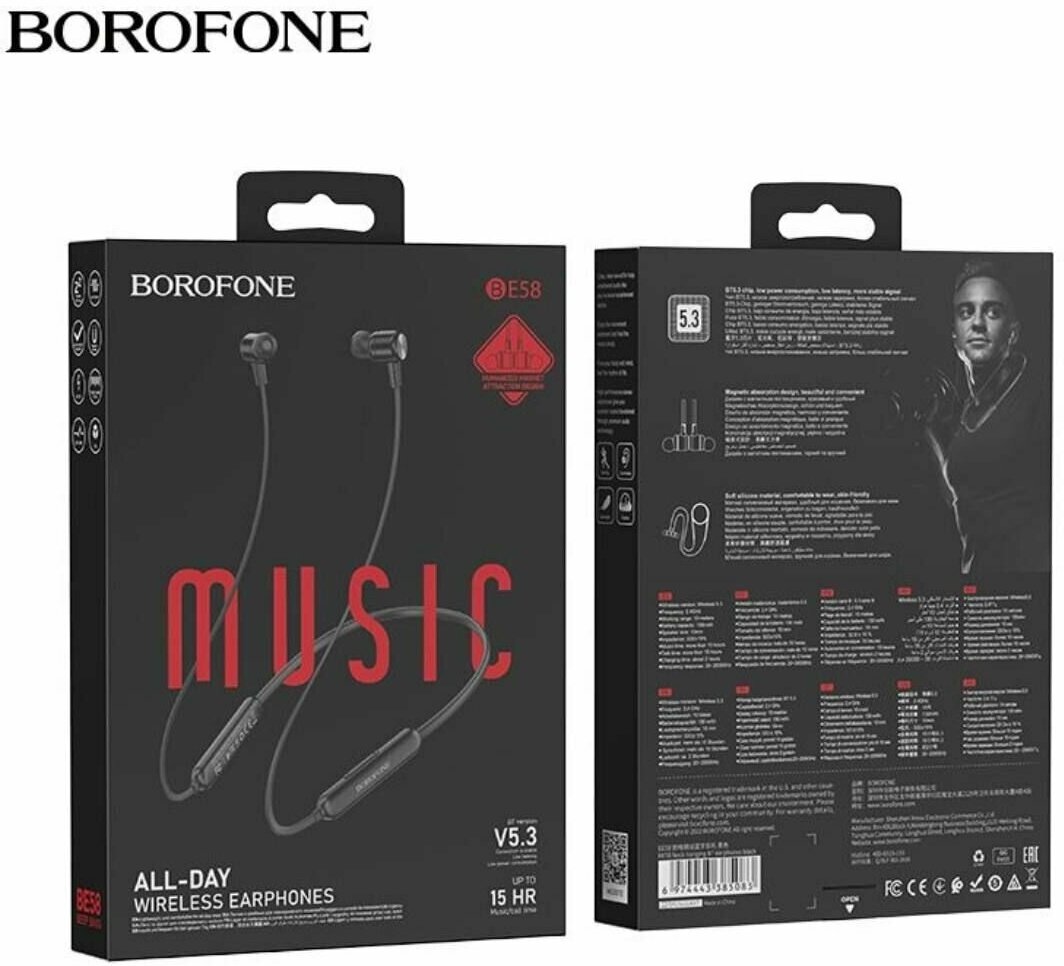 Беспроводные наушники Borofone BE58 (15ч/130mAh) черные