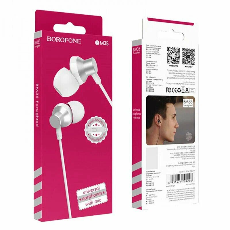 Гарнитура внутриканальная Borofone BM35 Farsighted, Jack 3.5mm, 1.2 м, Silver