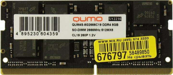 Оперативная память So-dimm Qumo 8GB DDR4-2666 (qum4s-8g2666c19) QUM4S-8G2666C19 .