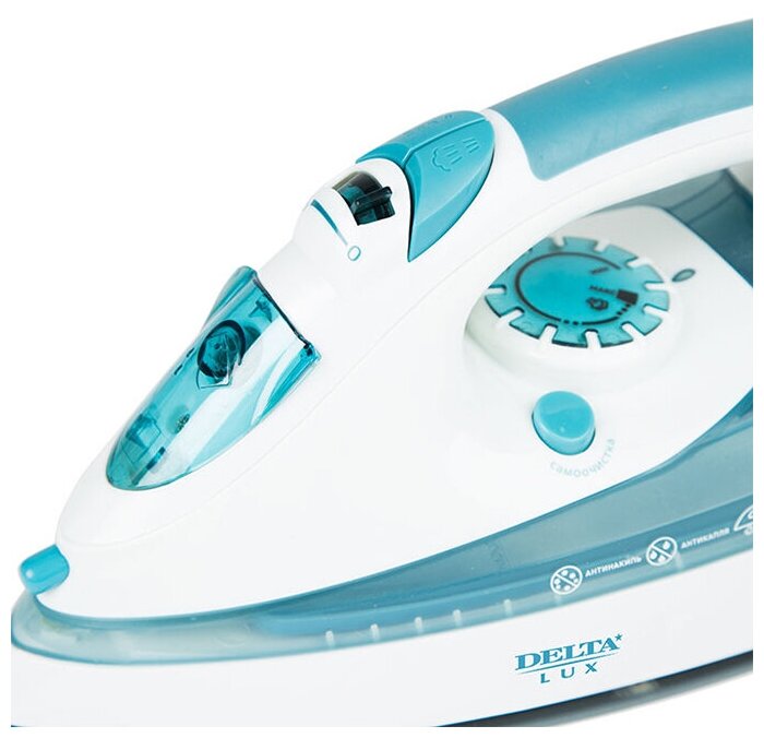 Утюг DELTA LUX DL-710 белый с серо-голуб: 2400 Вт,керамика,антикапля,антинакипь, автоотключение.