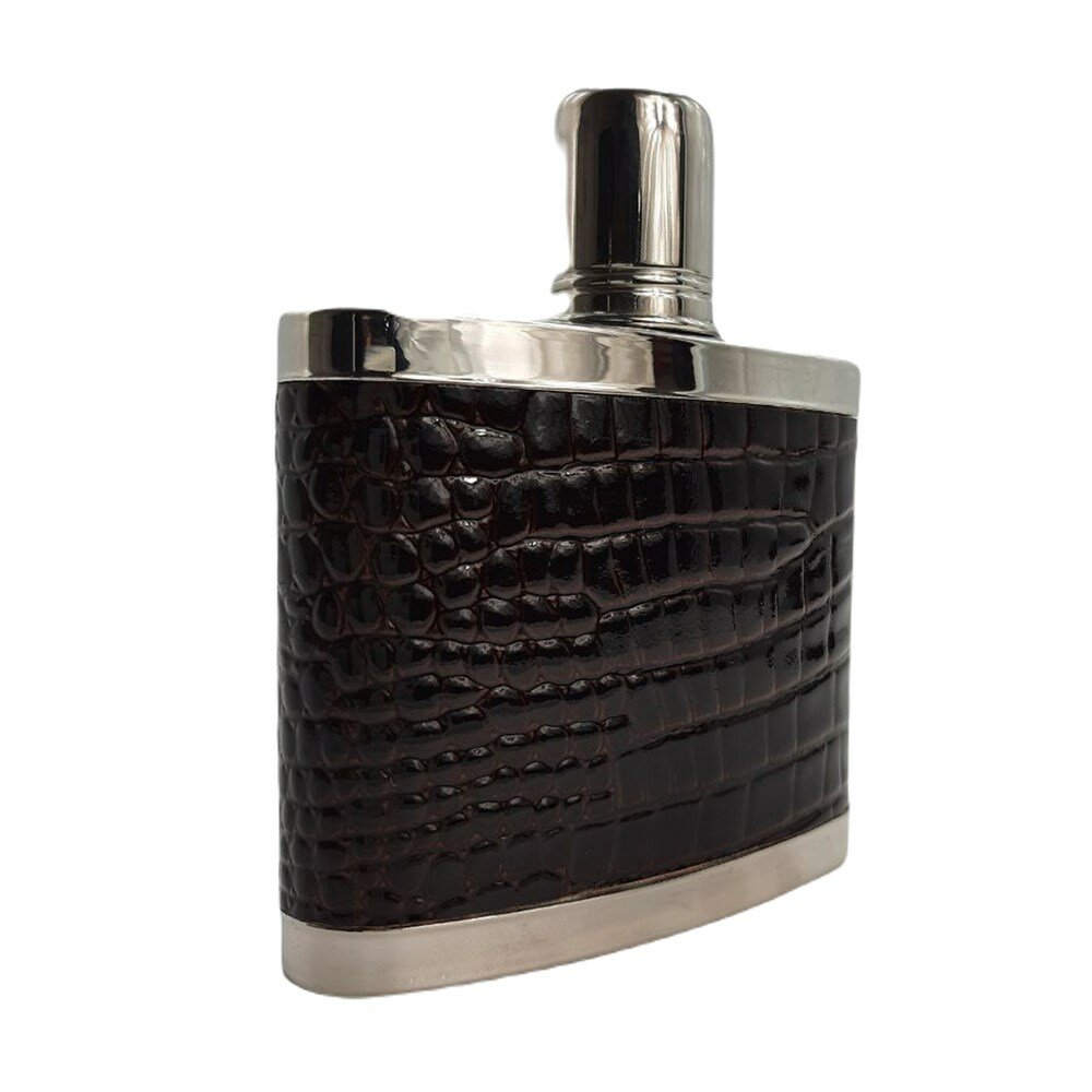 Купить Фляга / Фляжка плоская-карманная / из нержавеющей стали и кожи / для воды и алкоголя / походная / 165 мл