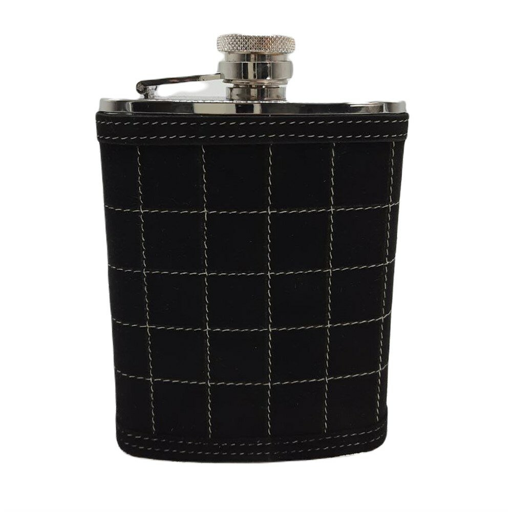 Купить Фляга / Фляжка плоская-карманная / из нержавеющей стали и замша / для воды и алкоголя / походная / 185 мл