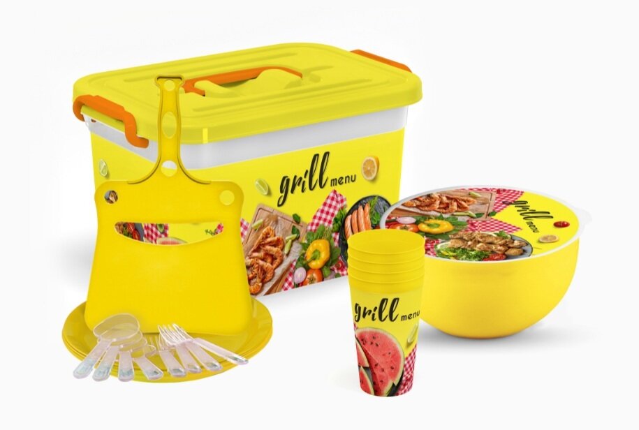 Комплект для пикника, 19 предметов на 4 персоны (Желтый)