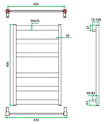 | Дополнительная информация | Комплектация: полотенцесушитель - 1 шт., крепления - 4 шт., перчатки для установки - 1 пара., гарантийный талон - 1 шт. |