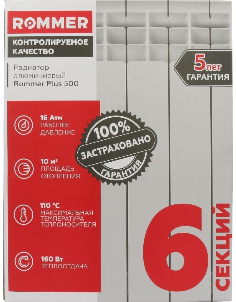 СохранитьРадиатор алюминий, 500х100 мм, Rommer, Plus, 6 секций, 89563 интересное: