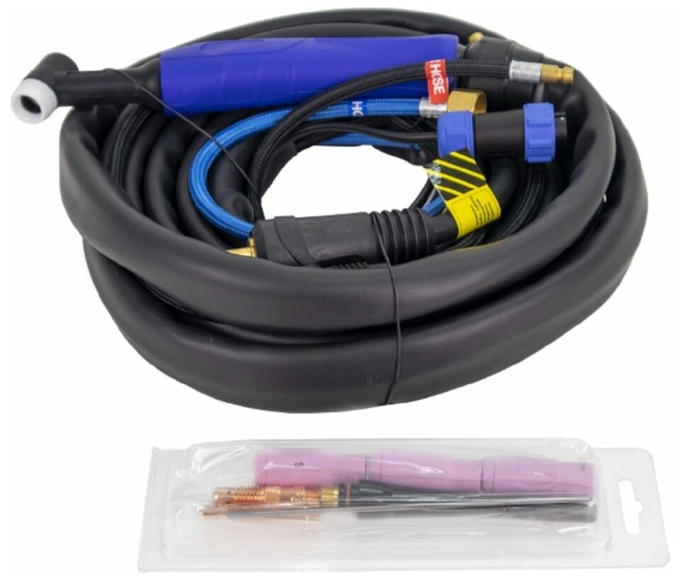 | Комплектация | Горелка TS18 4 м.- 1 шт. Клемма заземления 3 м.- 1 шт. Колеса - 4 шт. Сопло номер 5 (8,0мм) - 1 шт. Сопло номер 6 (9,8м) -1 шт. Сопло номер 7 (11,2мм) -1 шт. Короткий хвостовик – 1 шт. в комплекте. Цанга – 2 шт. Вольфрамовый электрод 2,4 мм - 1 шт. Сварочный аппарат Паспорт |