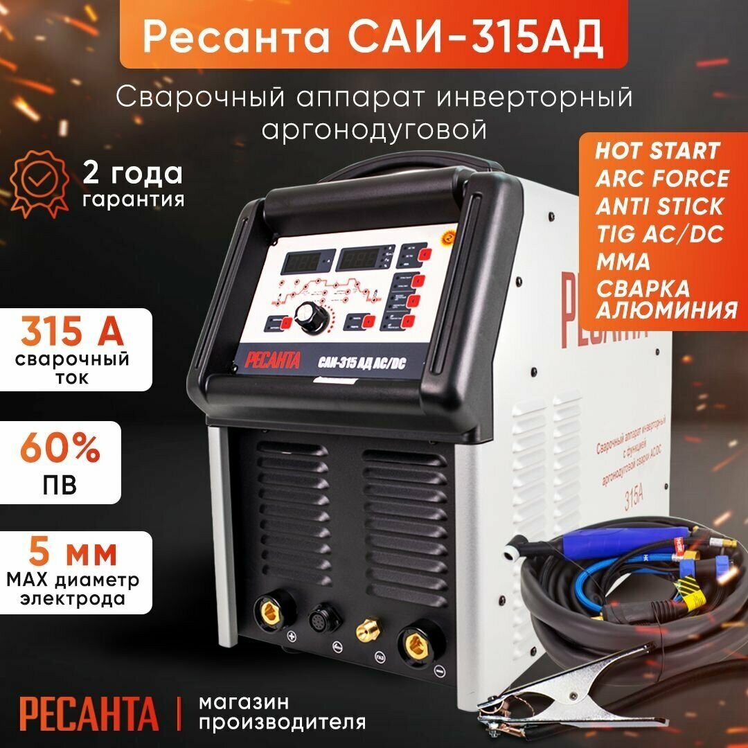 Сварочный аппарат инверторный Ресанта САИ-315АД (АС/DC, MMA, TIG, 315 А, ПВ - 60%)