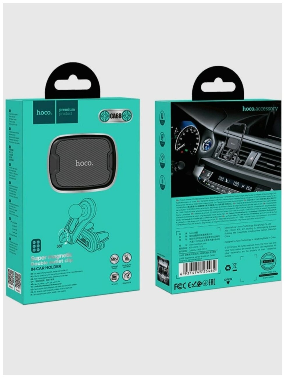 Держатель автомобильный HOCO, CA68, Sagittarius, пластик, силикон, воздуховод, шарнир, магнит, чёрный