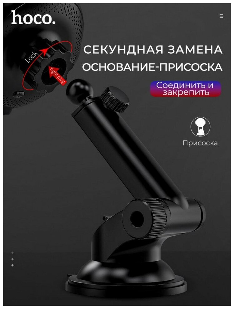 Держатель автомобильный на стекло/торпеду/решетку с беспроводной зарядкой, CA48, HOCO, черный интересное: