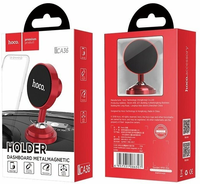 Держатель в воздуховод Hoco CA36 металл, торпедо, шарнир, красный интересное: