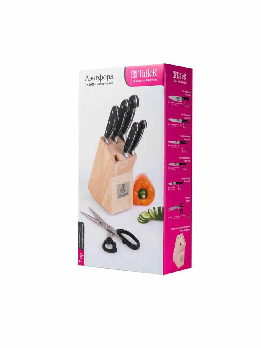 Набор кухонных ножей с ножницами Taller TR-22009 Лэнгфорд на подставке, 7 предметов