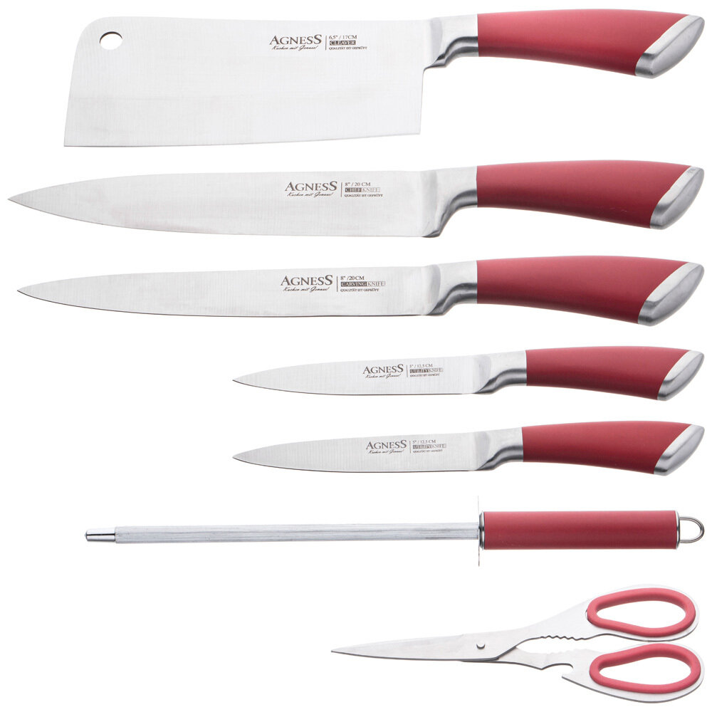 Набор кухонных ножей 8 предметов Agness на подставке, цвет красный 911-501