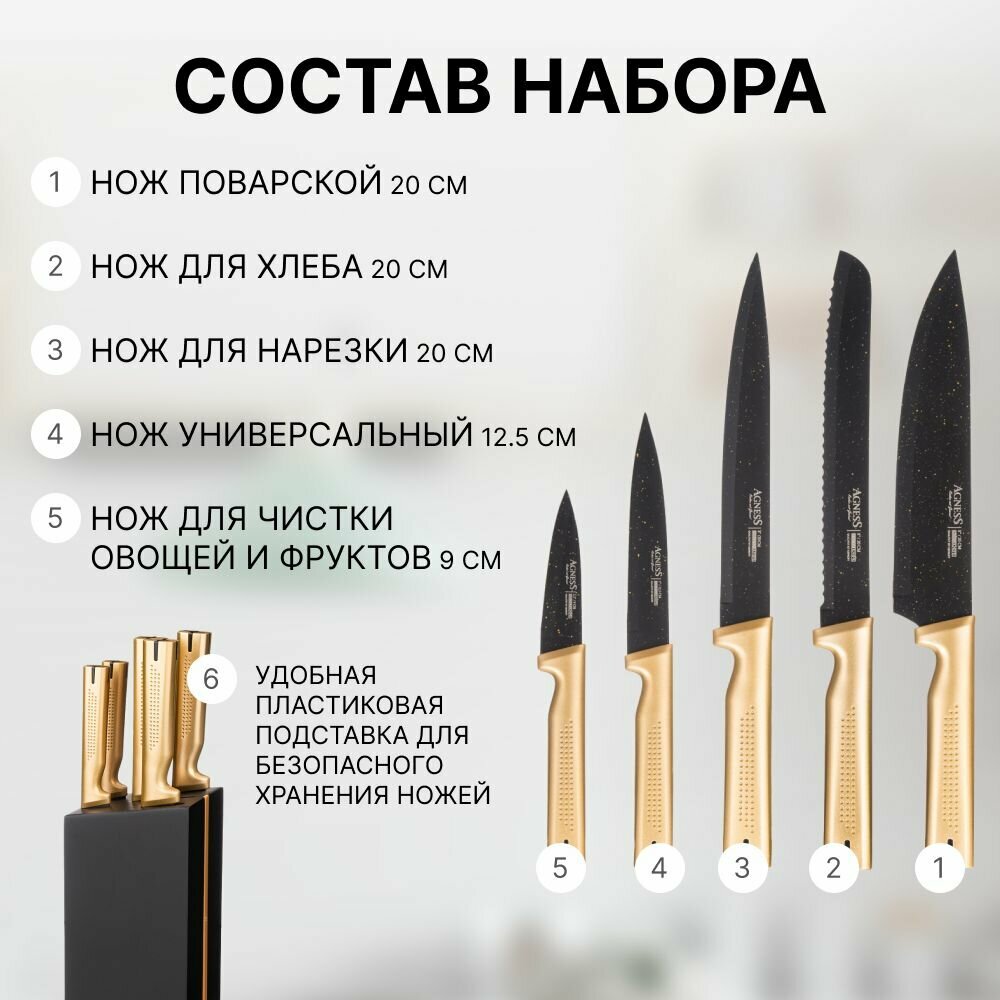 Набор Ножей Agness На Деревянной Подставке, 6 Предметов интересное: