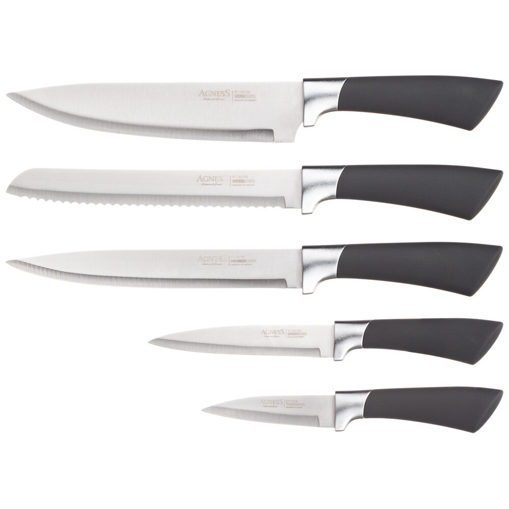 Набор Ножей Agness 5 Пр.С Магнитным Держателем И Ручкой Из Нерж.Стали