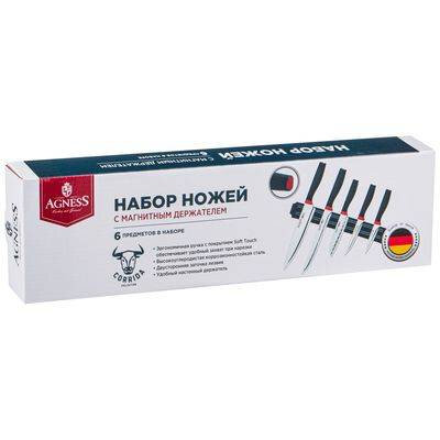 Купить Набор ножей 6 пр.с магнитным держателем и пластиковой ручкой, серия corrida Agness (911-638)