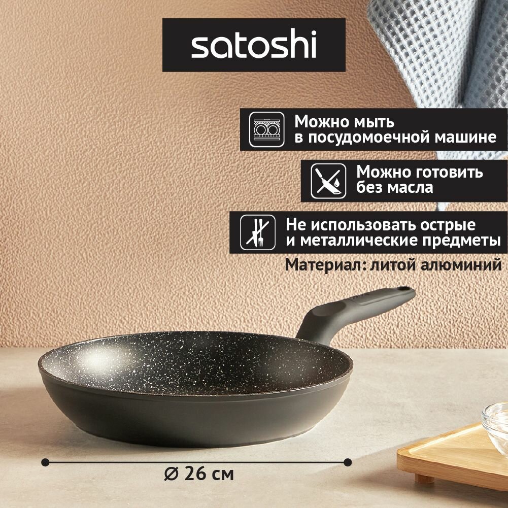 Сковорода Satoshi Стоун 26 см с антипригарным покрытием, без крышки, индукция