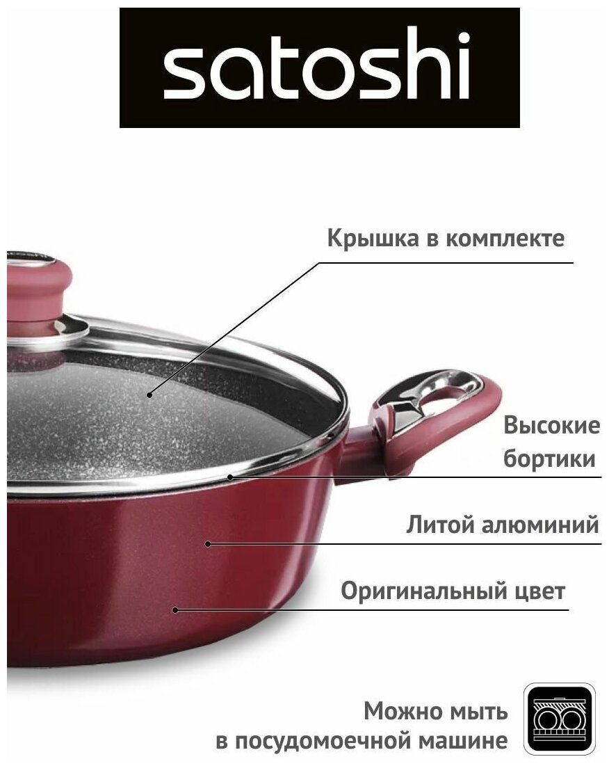 SATOSHI Ла Мери Сотейник литой 4,3л d=28х8см, с крышкой, антипригарное покрытие мрамор, индукция