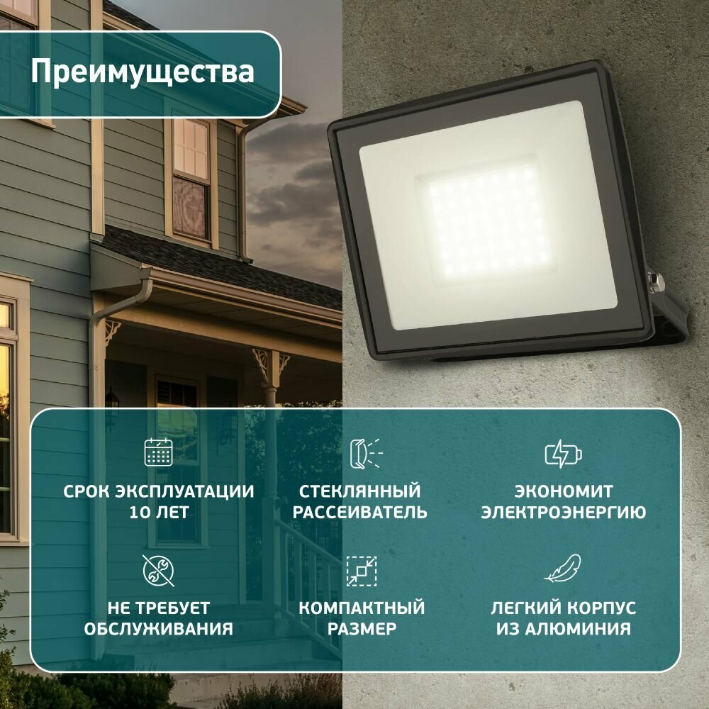 Эра Б0052859 Прожектор светодиодный уличный LPR-023-0-30K-050 50Вт 3000K 4000Лм IP65