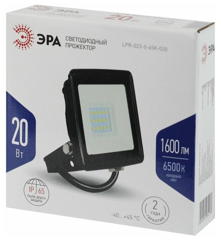 Прожектор светодиодный ЭРА LPR-023-0-65K-020, 20 Вт, свет: холодный белый