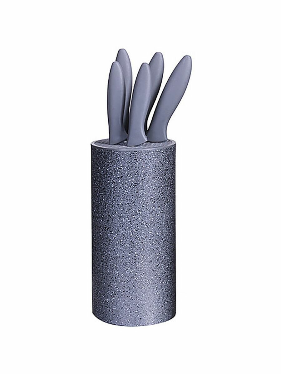 | Комплектация | нож поварской - 33 см; нож для хлеба - 32 см; нож разделочный - 31,8 см; нож универсальный - 22,4 см; нож для чистки овощей - 18,3 см; подставка - тубус из полипропилена |