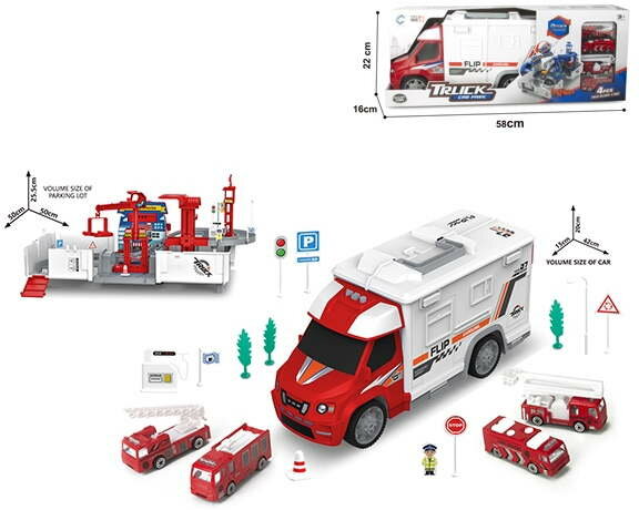 Набор 'Автотрек' Fire Rescue с лифтом (свет,звук) в коробке интересное: