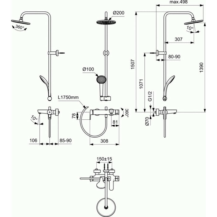 Душевая система Ideal Standard IDEALRAIN CERAFINE O BC749AA