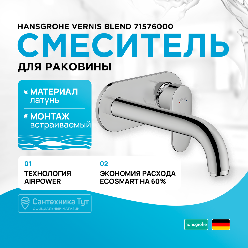 Внешняя часть смесителя для раковины hansgrohe Vernis Blend скрытого монтажа, настенный 71576000, хром