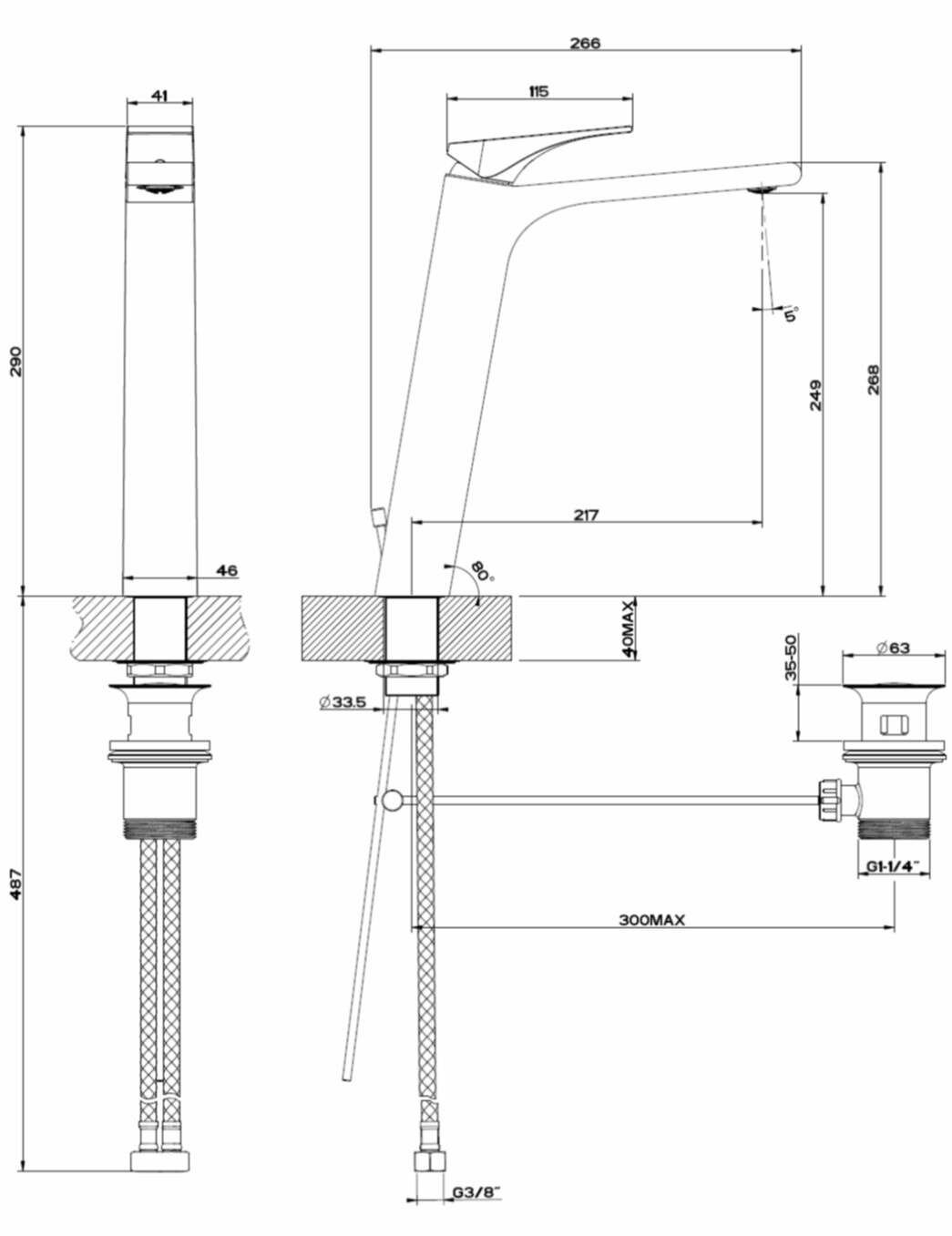 Смеситель Gessi Via Solferino 49003-031 для раковины с донным клапаном