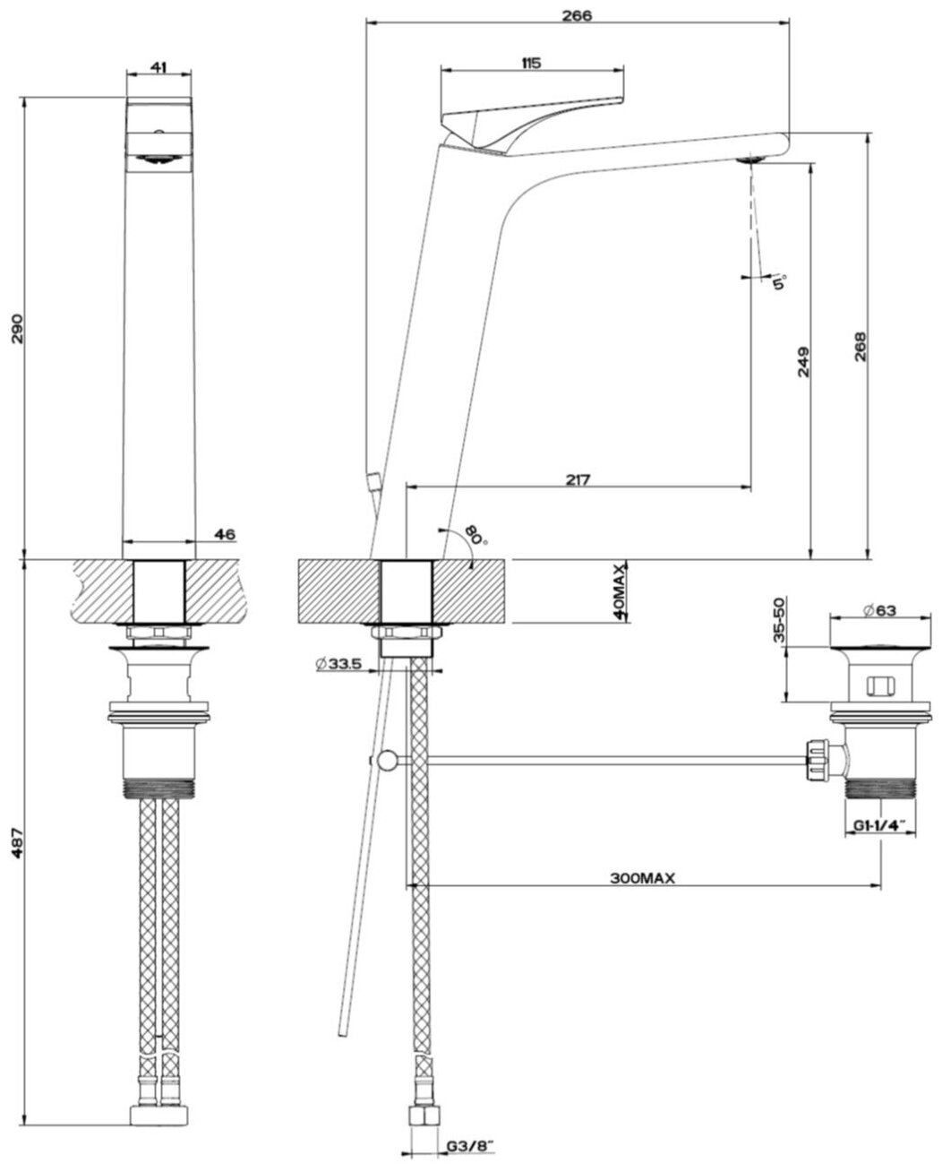 Смеситель Gessi Via Solferino 49003-031 для раковины с донным клапаном