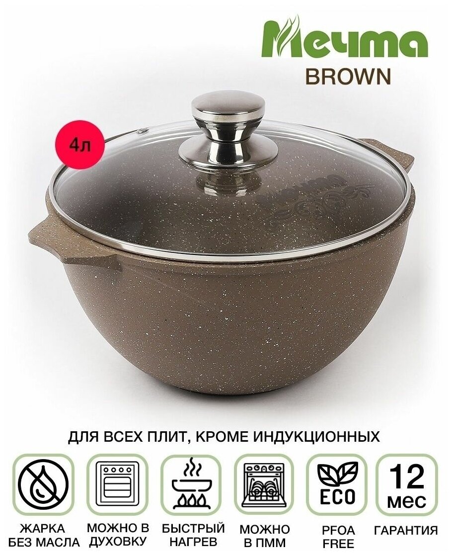 Казан алюминиевый Мечта Гранит (54806), коричневый, 4 л