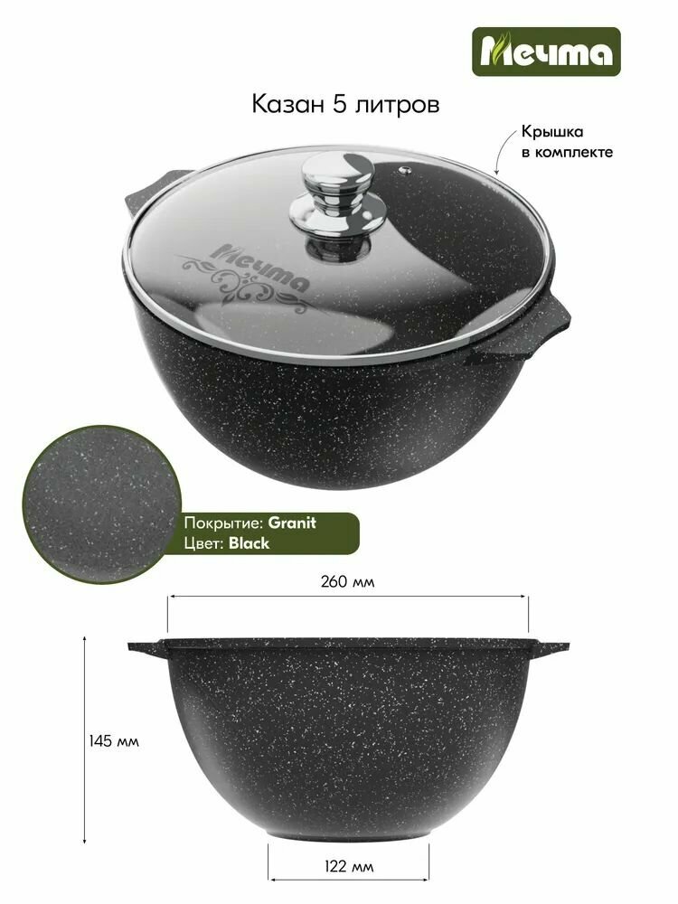 Мечта Казан «Гранит» 5 л, с антипригарным покрытием