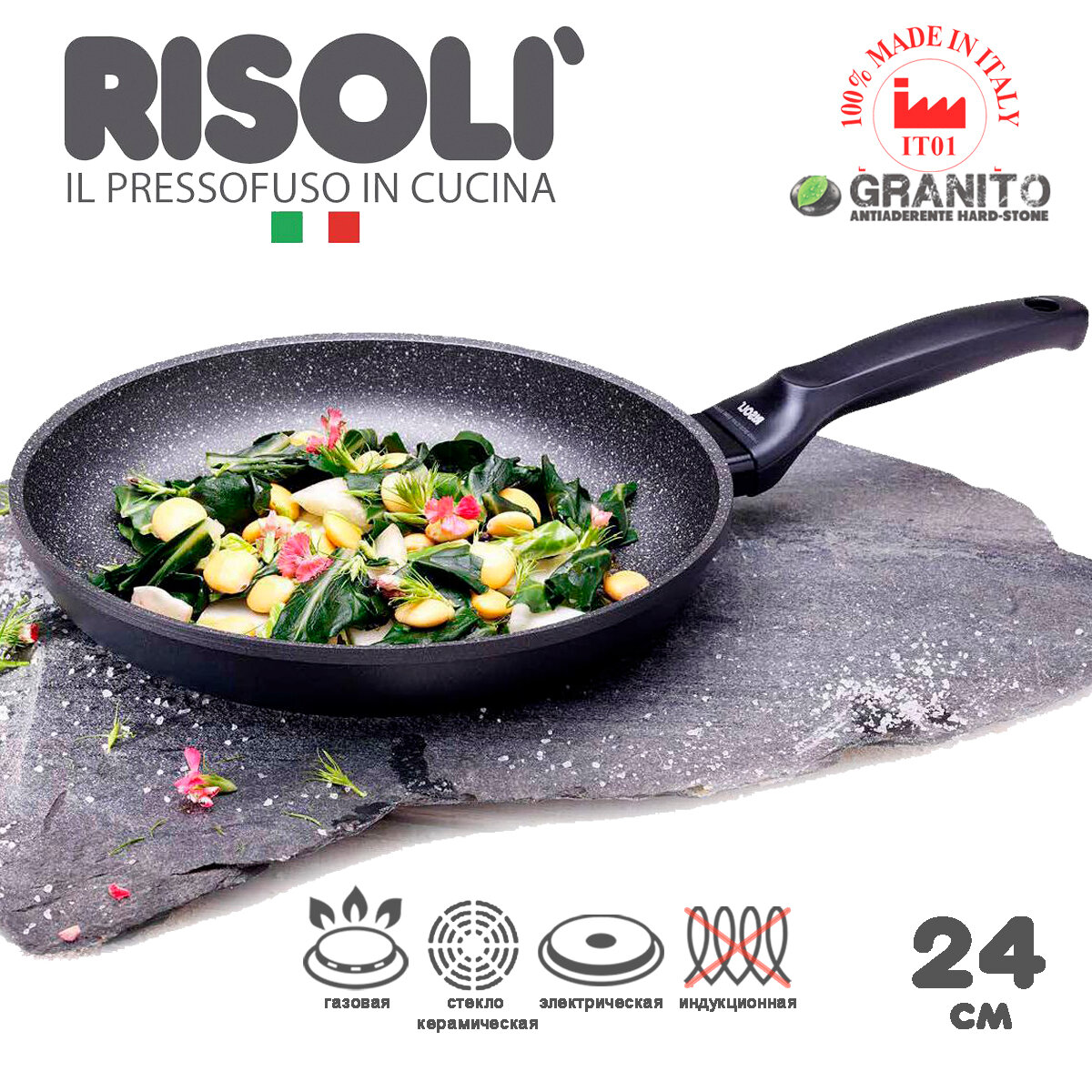 Сковорода Risoli Granito глубокая 24 см для яичницы нева металл гранит антипригарная алюминиевая стейков стальная мраморным нержавейка