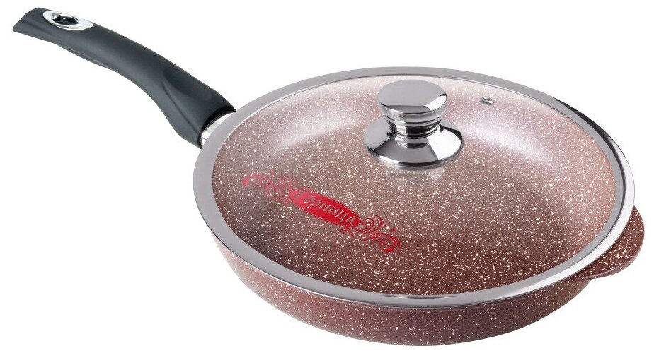 Горница Сковорода с пластиковой ручкой с крышкой Шоколад 260х55мм