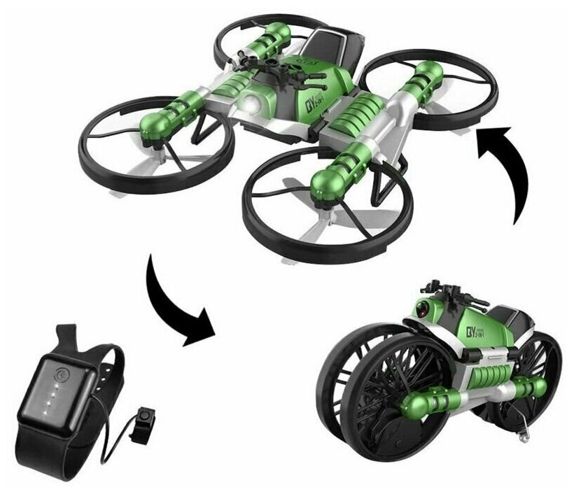 Квадрокоптер-мотоцикл Дрон трансформер 2в1 Leap Transform управление жестами Зеленый интересное:
